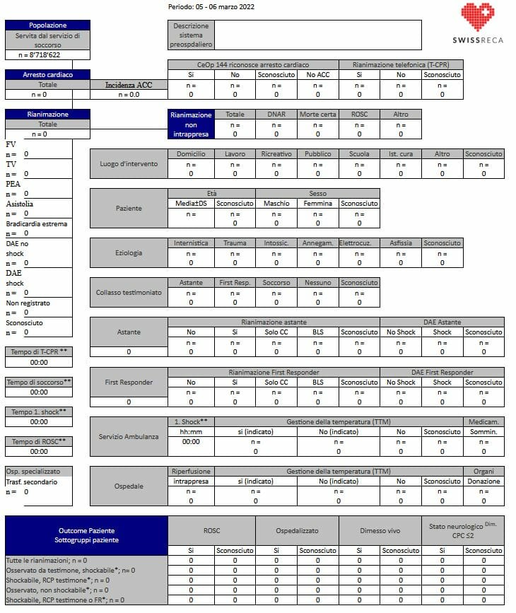 Il modulo d'inserimento dati è basato sul consenso internazionale di Utstein. Se si vuole avere un confronto internazionale sui dati, le richieste e le opzioni di rischio devono essere disponibili a livello internazionale. Questo ci limita un po‘ in termini di organizzazione dei campi.